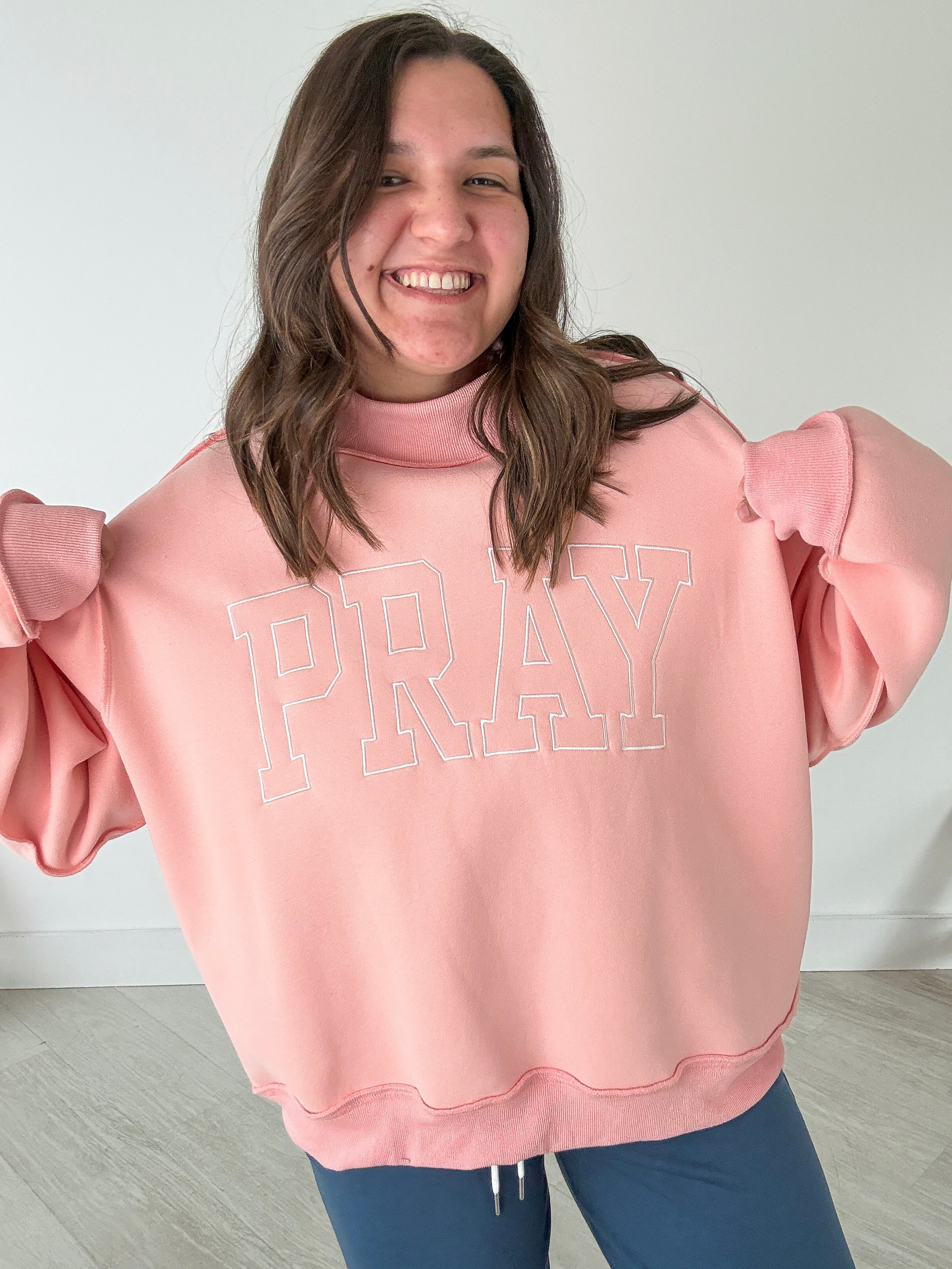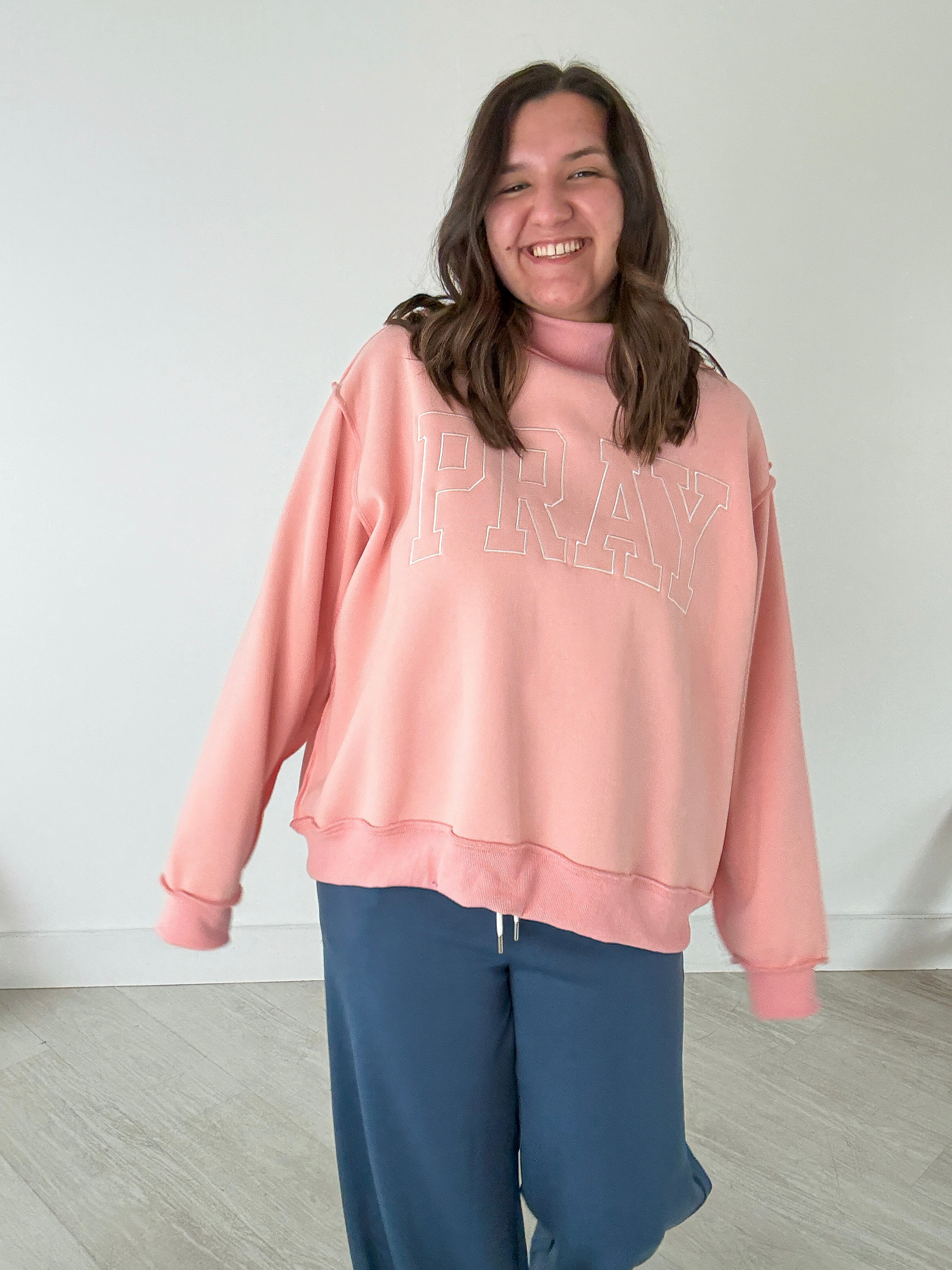 PRAY Pink Mock Neck Sweatshirt