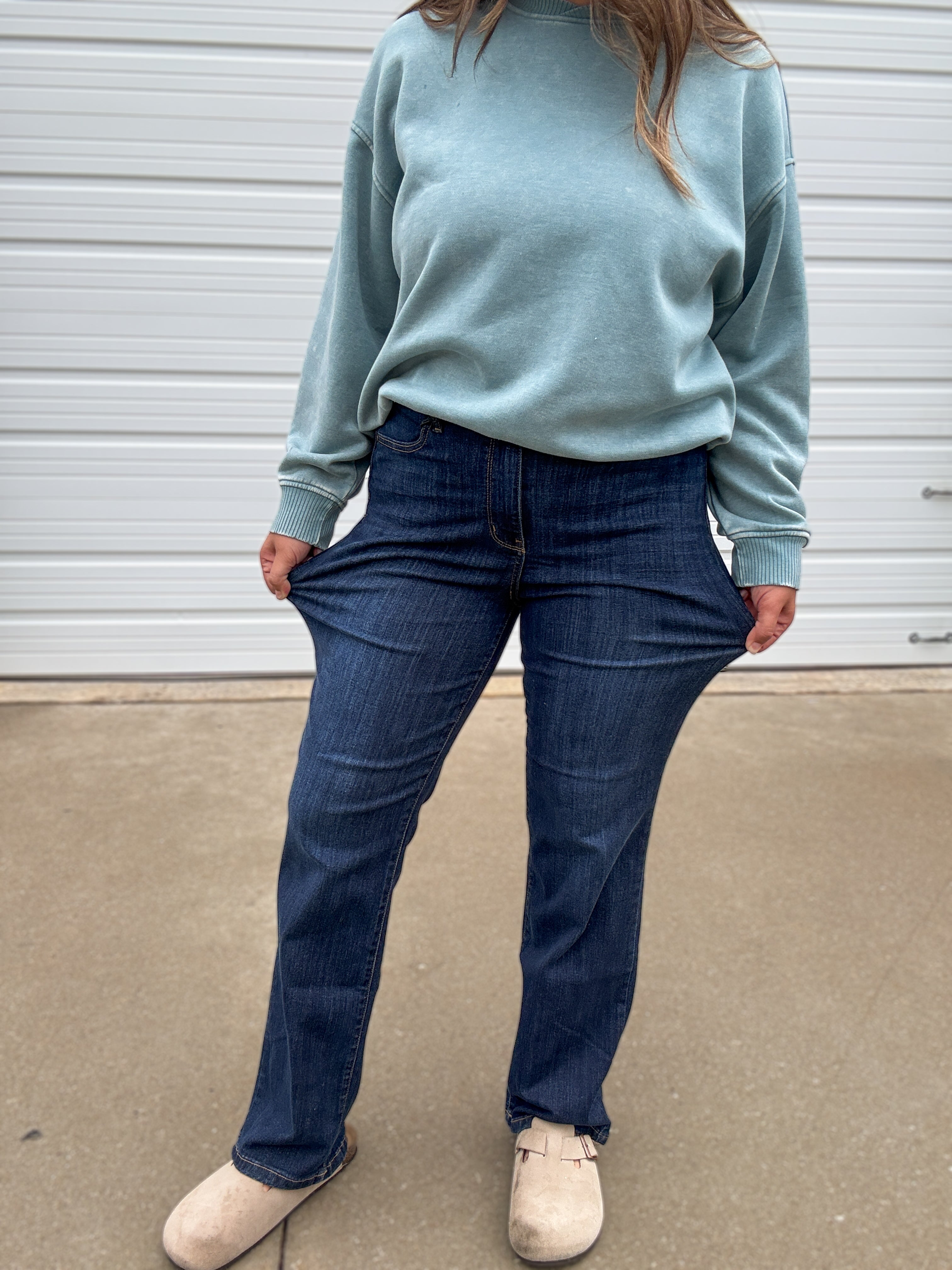 • Slip into the Joan Dark Wash Straight Leg jeans and experience buttery-soft comfort with a high-waisted fit that flatters every curve. The timeless dark wash and straight leg silhouette give you an effortlessly cool vibe, perfect for anything from brunch to a night out. Comfortable, stylish, and ready to become your new favorite go-to jeans!