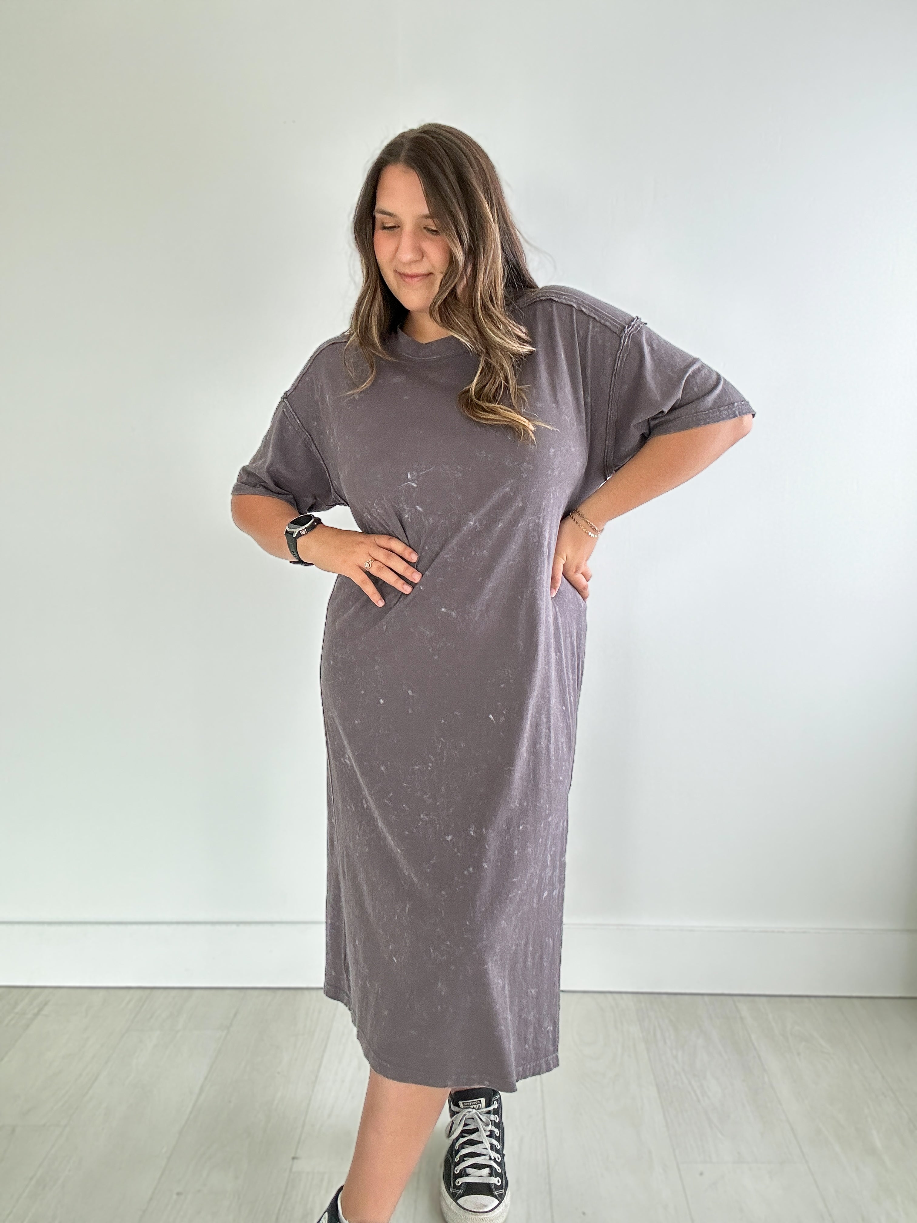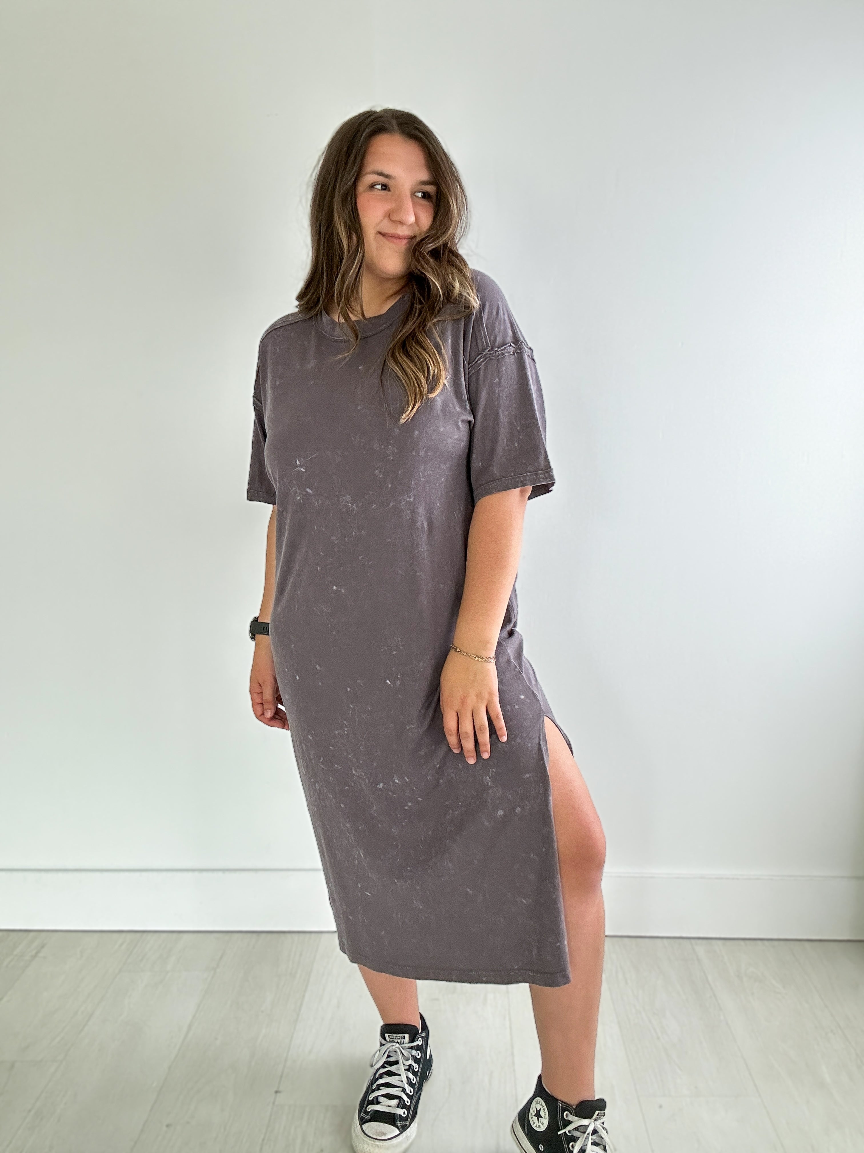 Mineral Washed Midi Dress {Charcoal}