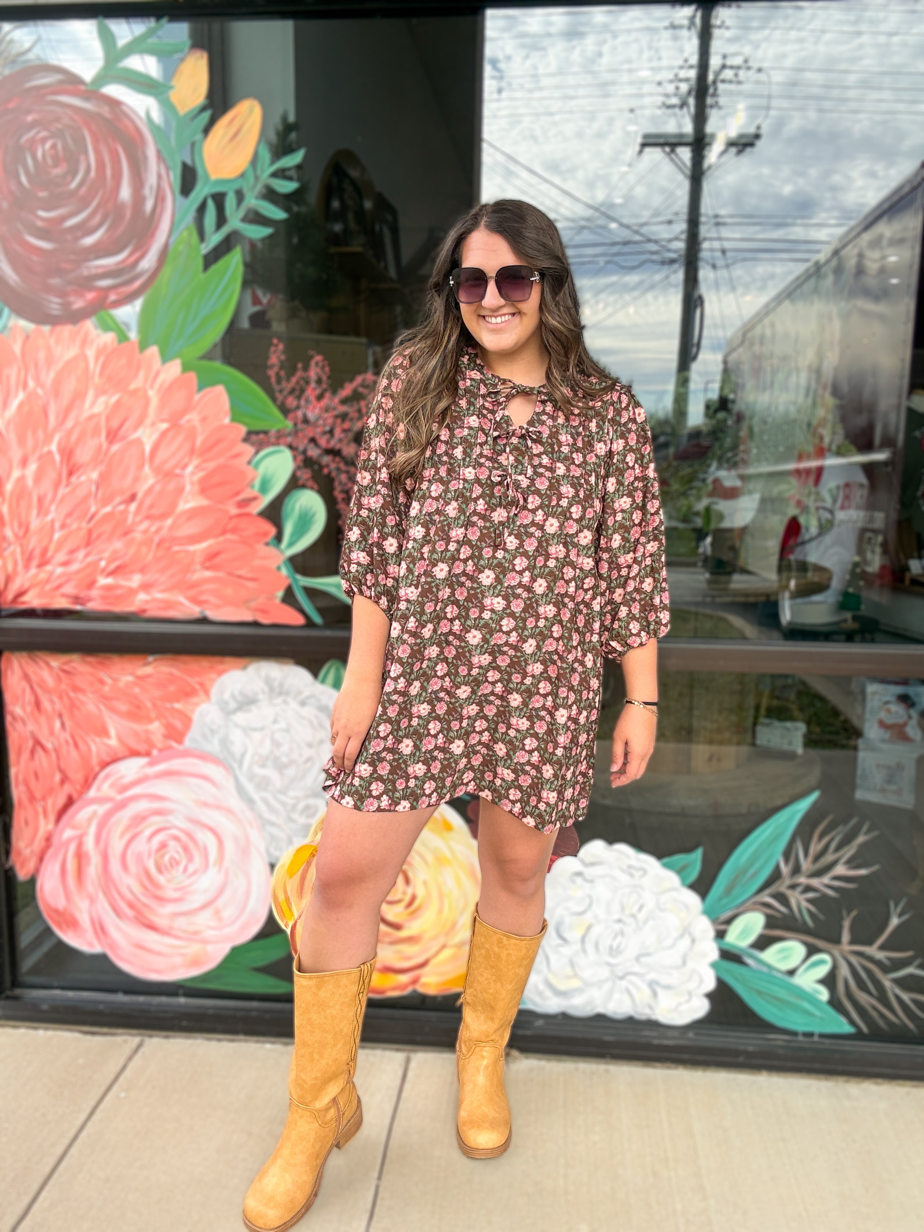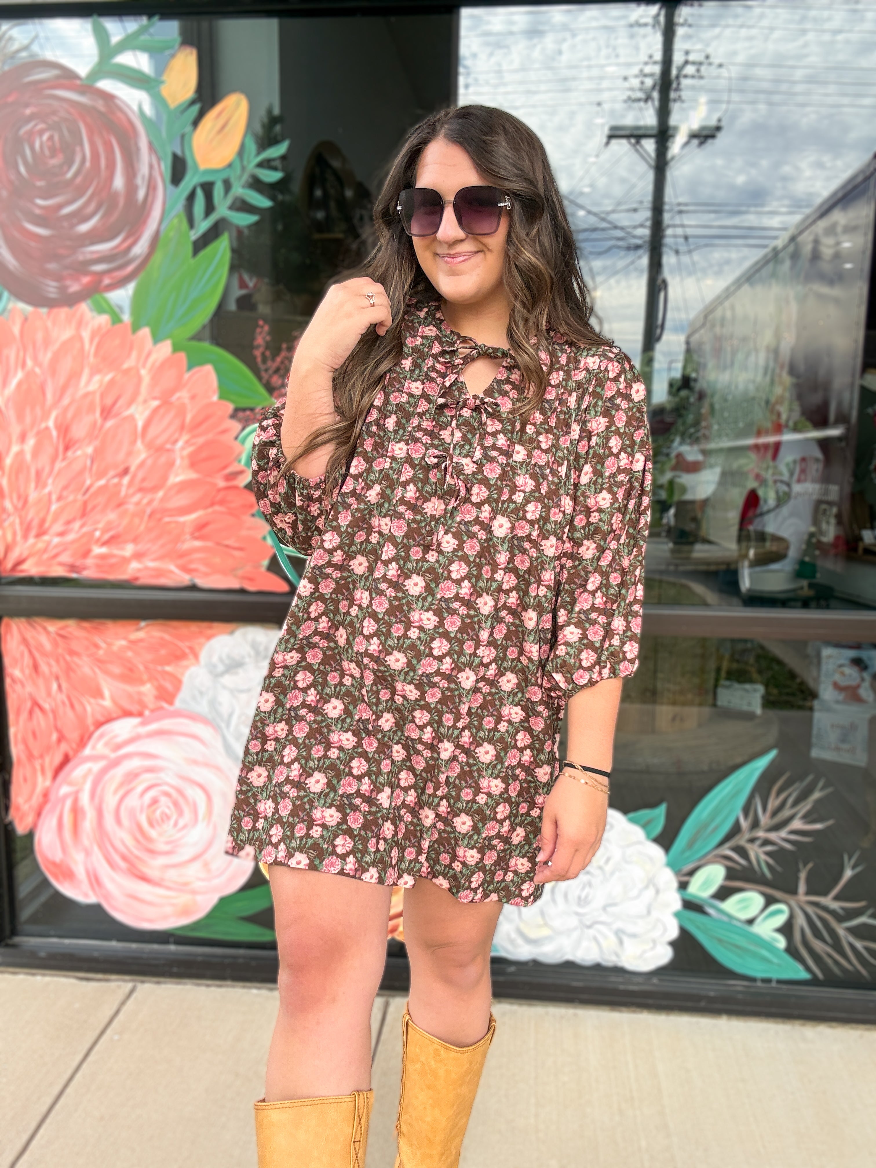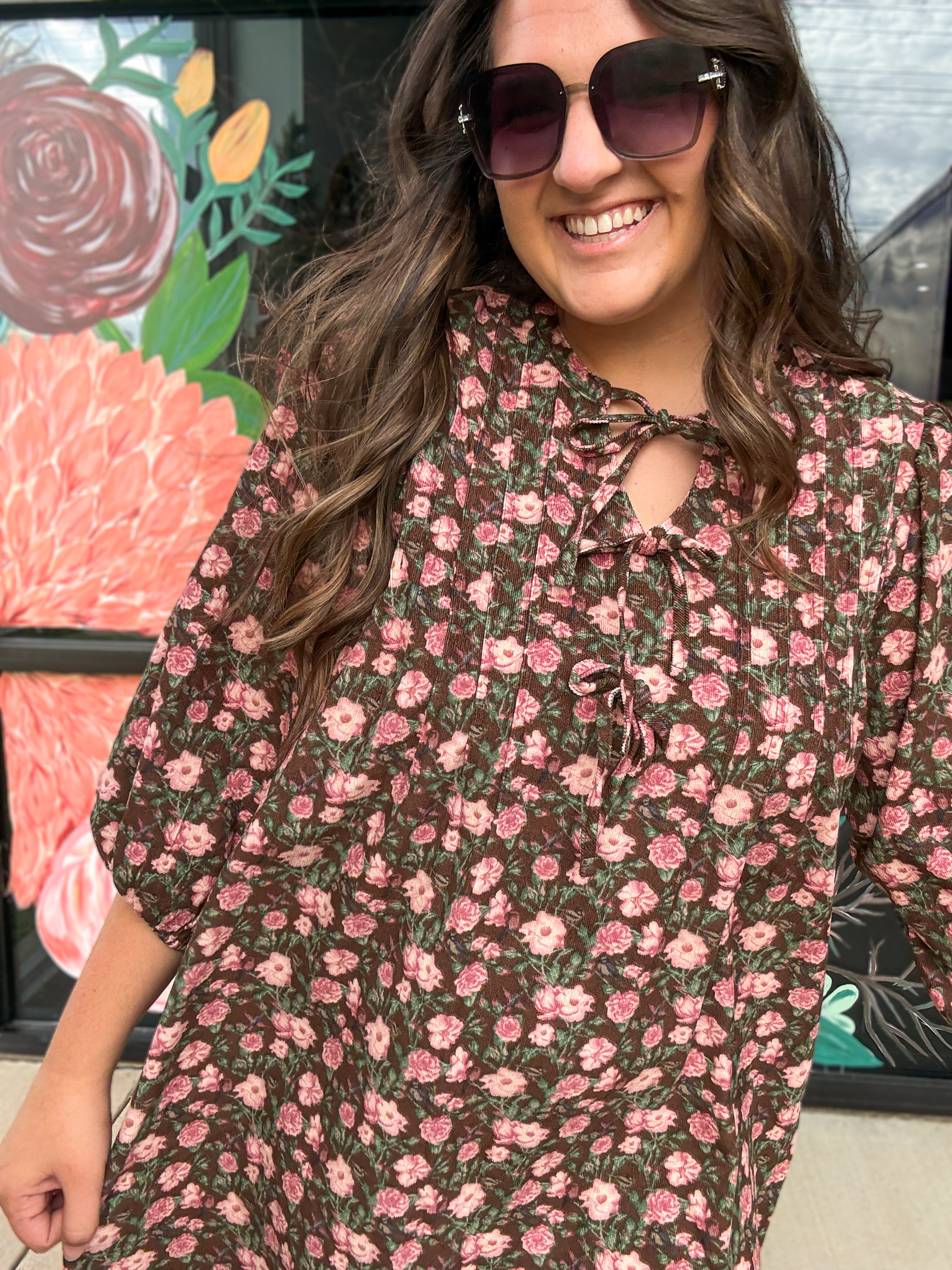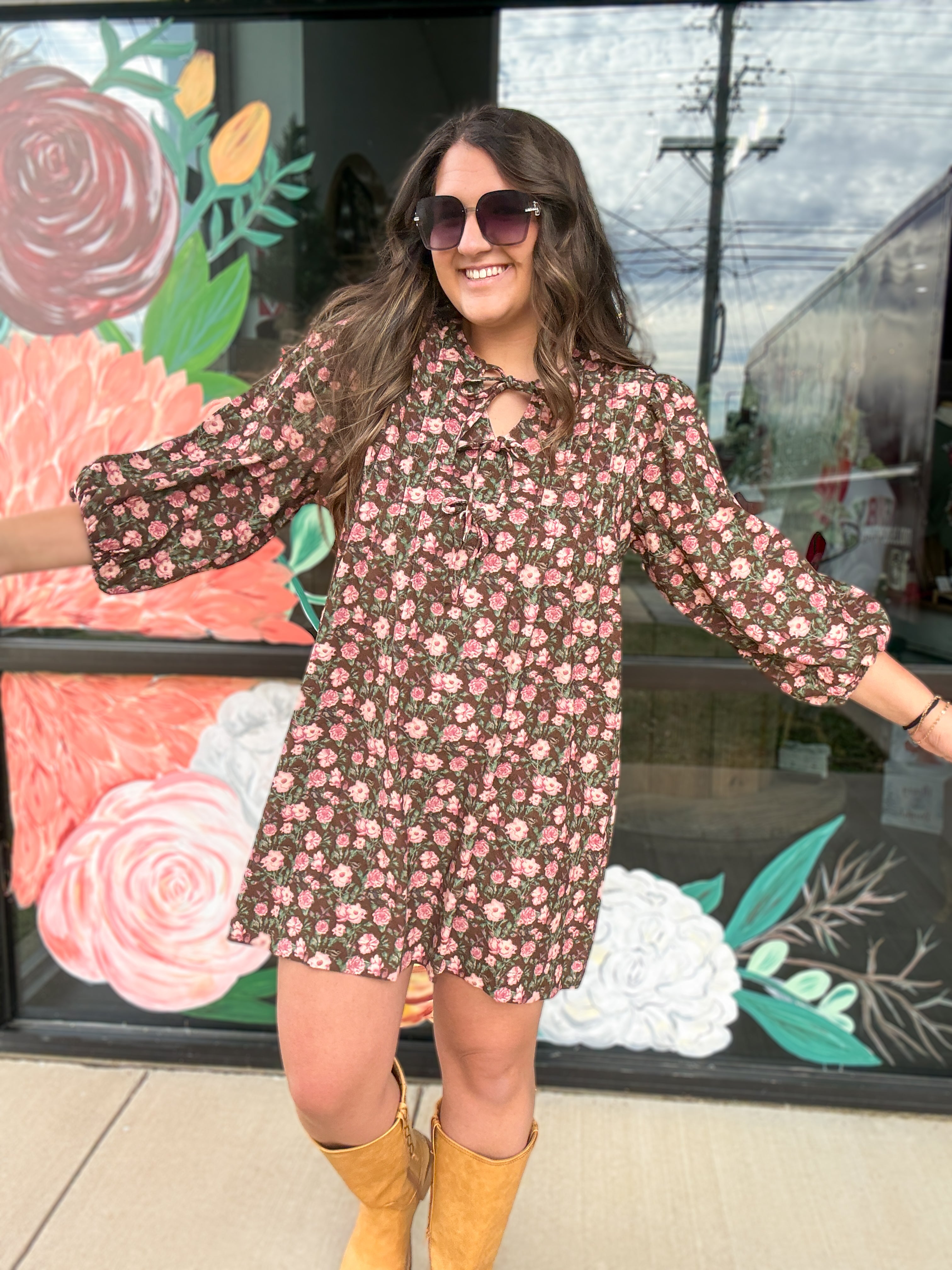 Floral Tie-Neck Babydoll Dress