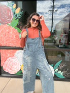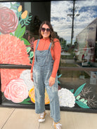 - washed denim loose fit overalls
