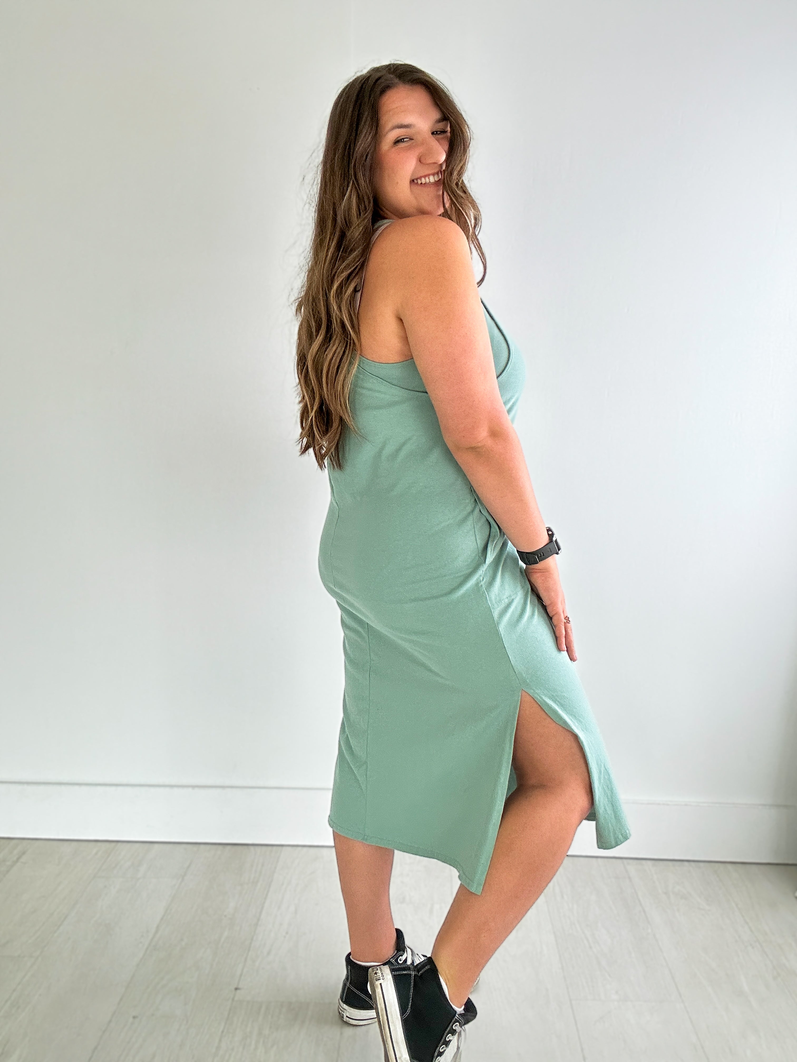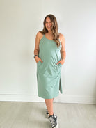 Unleash your inner fashion rebel with our Tank Casual Midi Dress! Featuring a playful V-neckline and comfy sleeveless design, this midi dress is perfect for all-day wear. With convenient side pockets and a daring side slit, you'll never want to take off this trendy maxi dress!