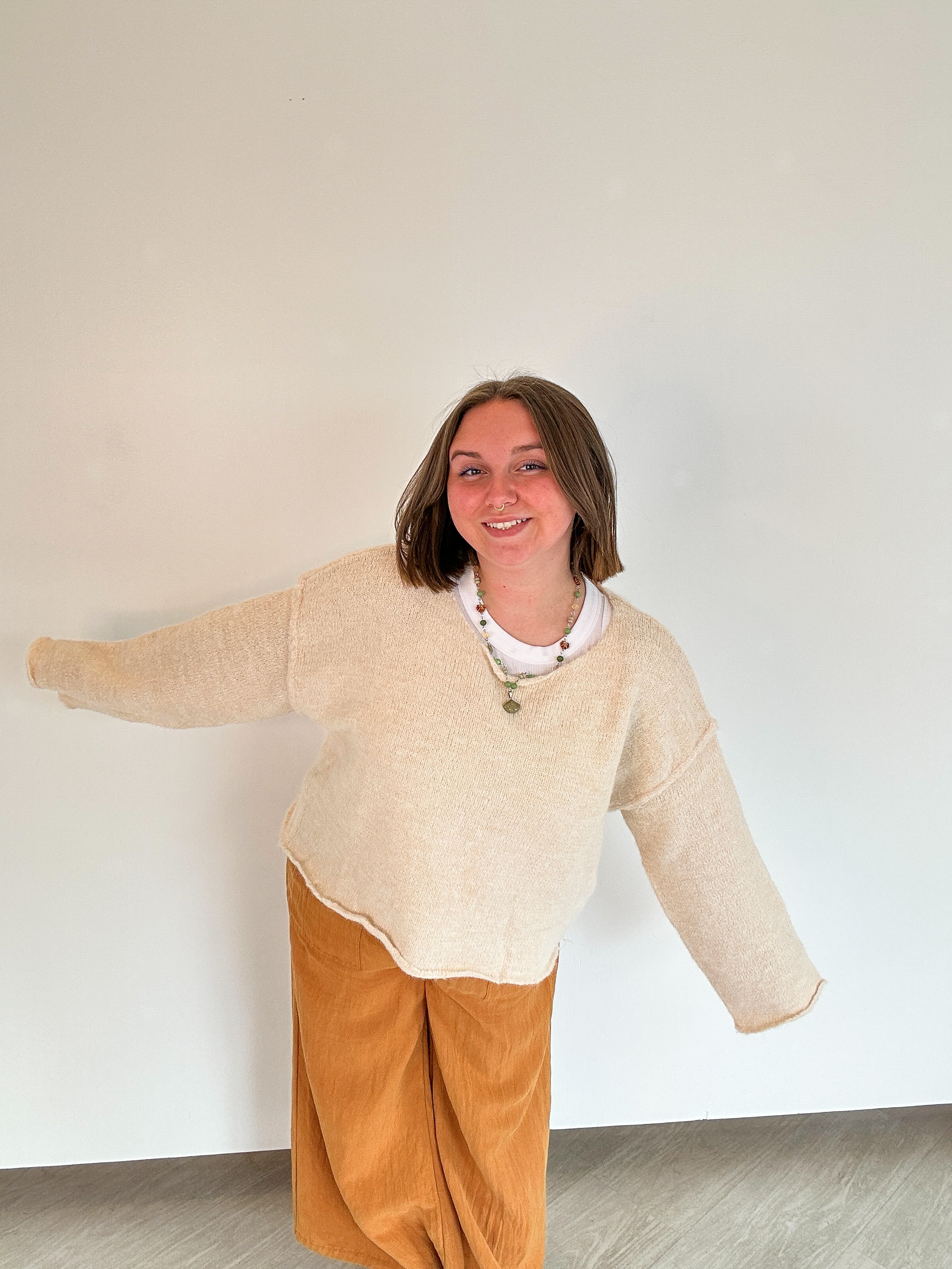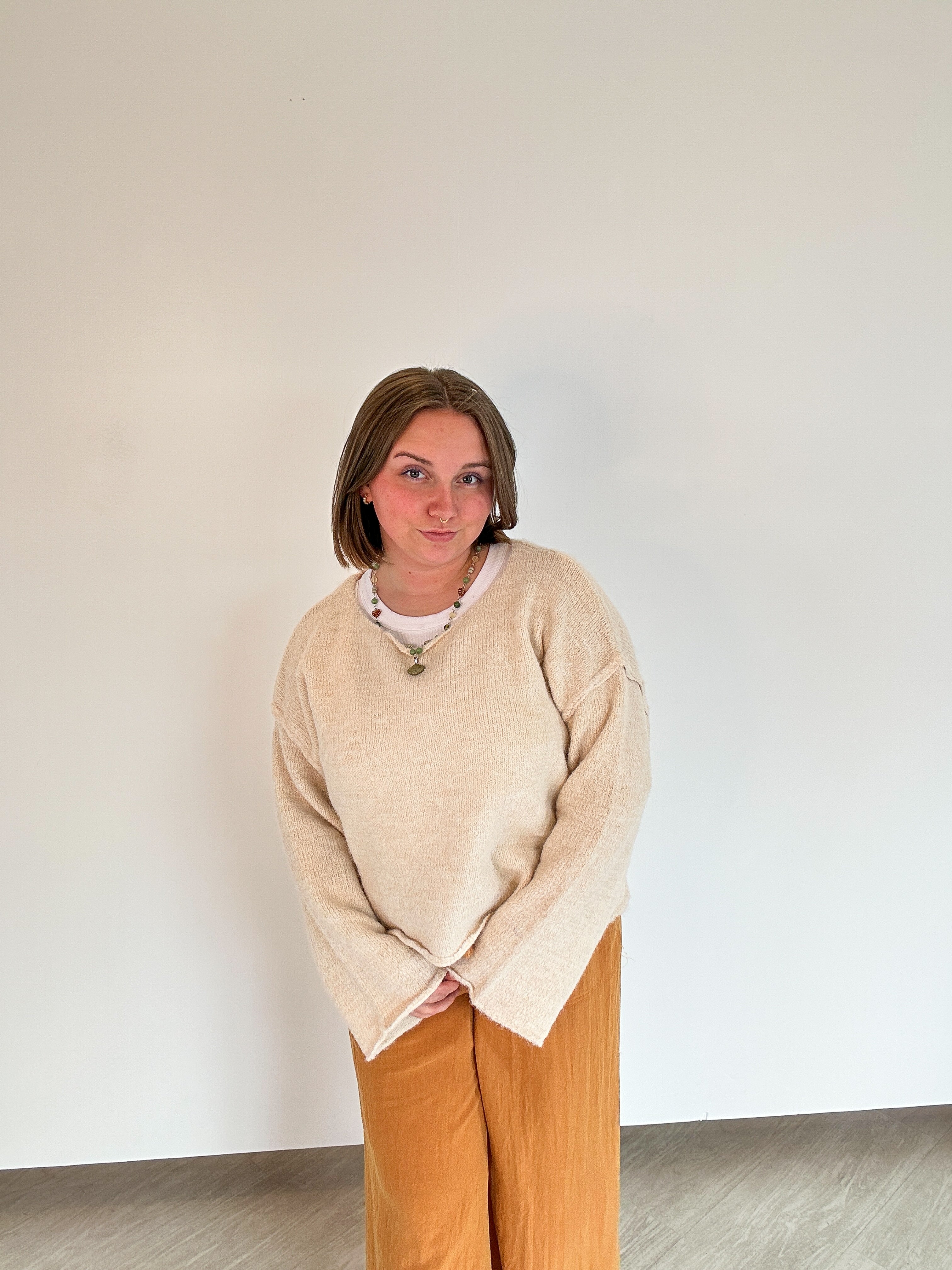 You Will Want To Wear This Sweater On Repeat. It Has A Melange Knit Construction And Shapes A Boat Neck, Drop Shoulders And Flared Long Sleeves For A Chic Style. Relaxed Bodice Keeps It Looking Effortlessly Charming!