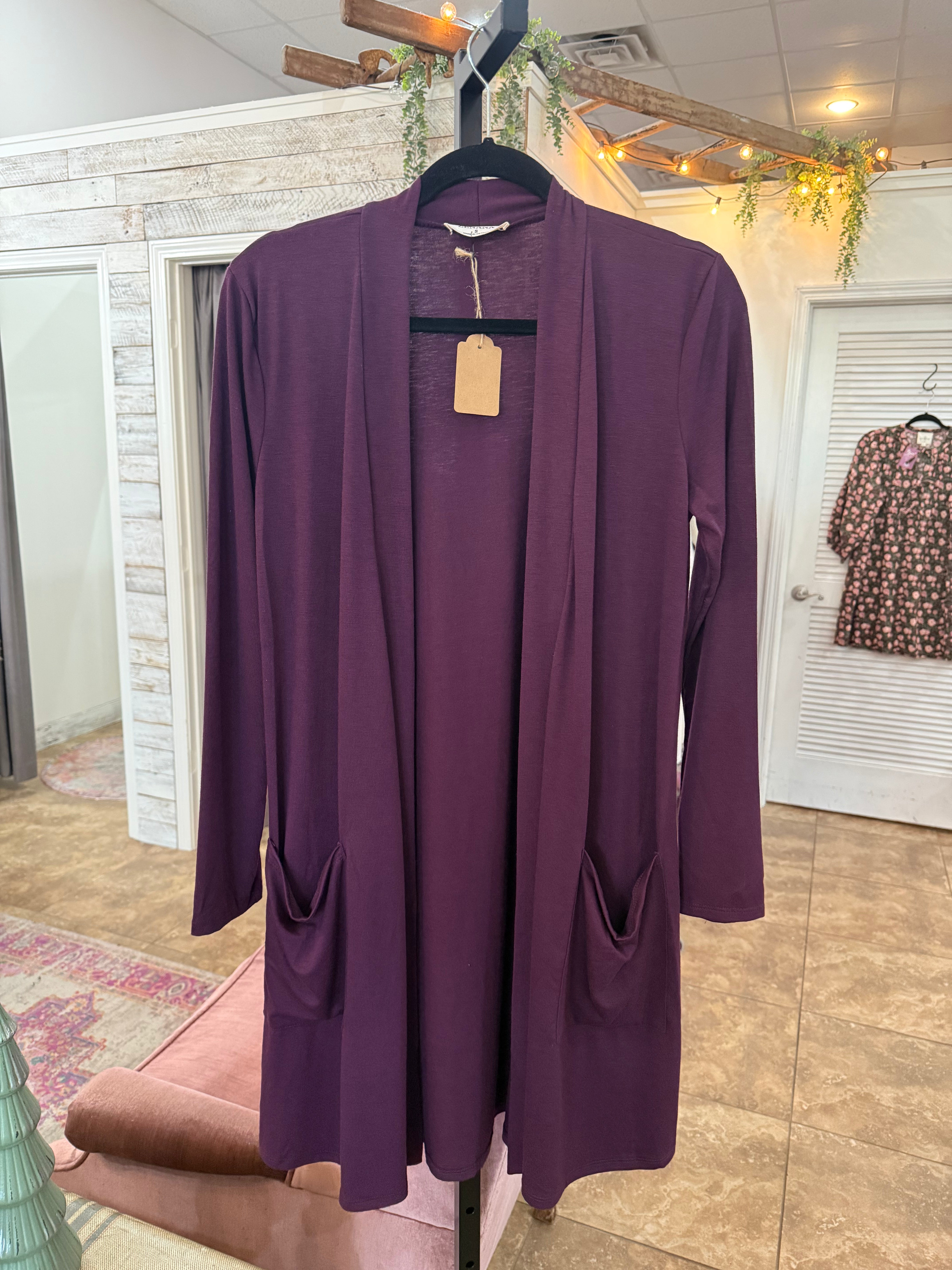 • Wrap yourself in cozy charm with the Eggplant Flowy Cardigan. Its buttery soft fabric feels like a gentle hug, perfect for everyday wear. Whether you're lounging at home or stepping out, this cardigan adds a playful pop of color and effortless comfort to any outfit.